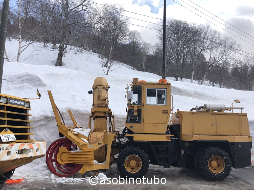 本格的な除雪車も温泉ホテルの自前でしょうね。