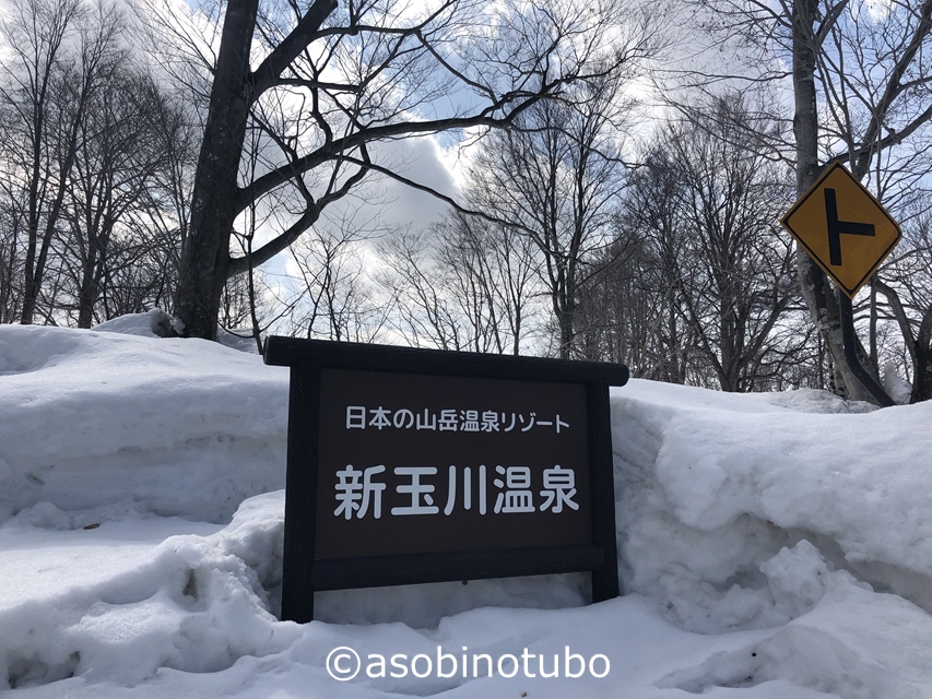 しばらく歩くと「新玉川温泉」の看板。