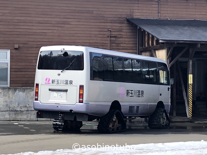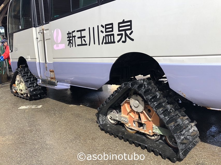 ゴムクローラーを4つ履いた雪上バス