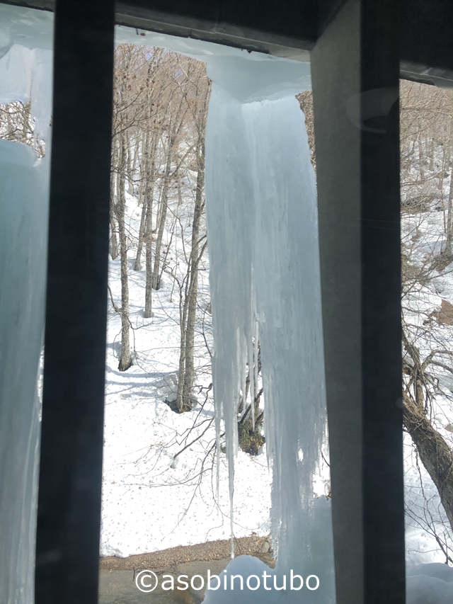 すごい氷の柱が出来ていました。動画の中でもすごいを見ることができますよ。