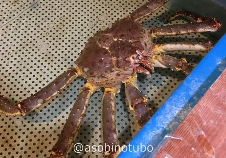 施設の中の市場にはタラバガニなど海産物も販売されています。