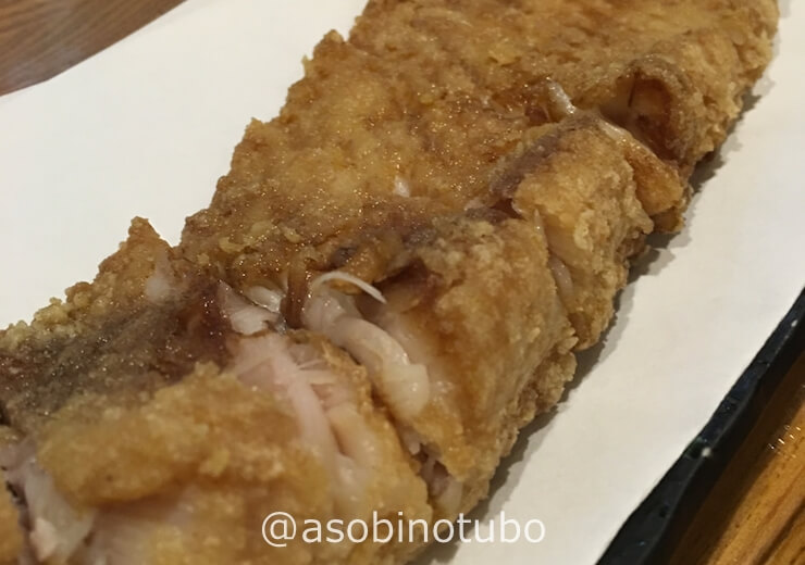 アナゴの天ぷらじゃあないですよ。これは店の一押し「カスベの竜田揚げです。軟骨までコリコリ食べれます。そうこうしてるうちにスタッフのおばちゃんが登場して2名体制になりました。
