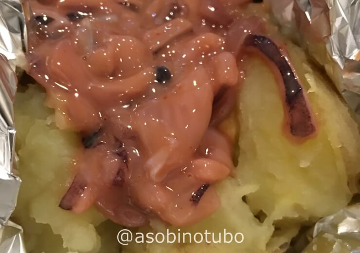 北海道ののジャガバターはイカの塩辛を乗せますよね、これがまた美味いのよ。手作り感満載のイカの塩辛も美味いがじゃがいもが美味い。なんの種類なんだろ、聞きそびれました。塩辛とじゃがいもって合いますよね。