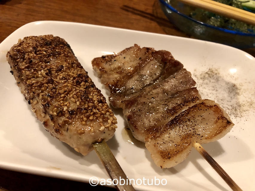 豚バラとつくねを1本づつ注文してみました。