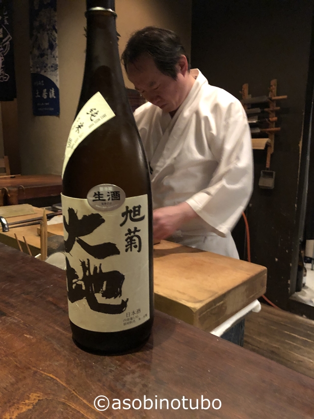 あっという間に冷酒を飲み干し、追加をお願いし旭菊の大地。