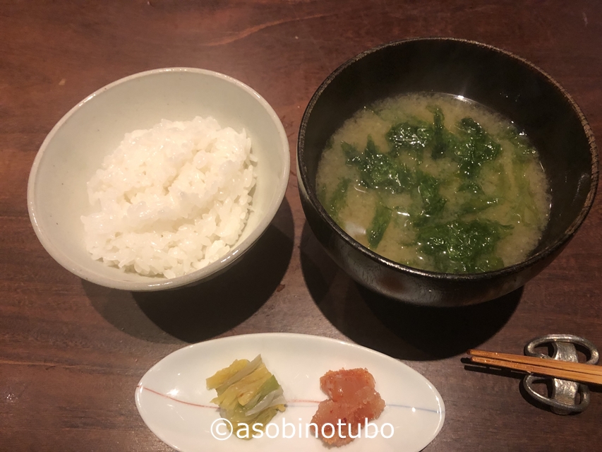 ここらでご飯とアオサのみそ汁で〆でございます。