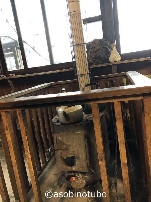 薪ストーブがあります。ストーブ周りは温かい。