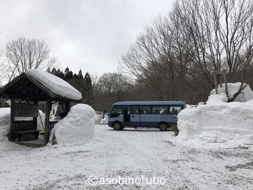 玄関まで来ると鶴の湯のバスがあるじゃないですか。このバスで田沢湖駅あたりまで送迎するのでしょうね。