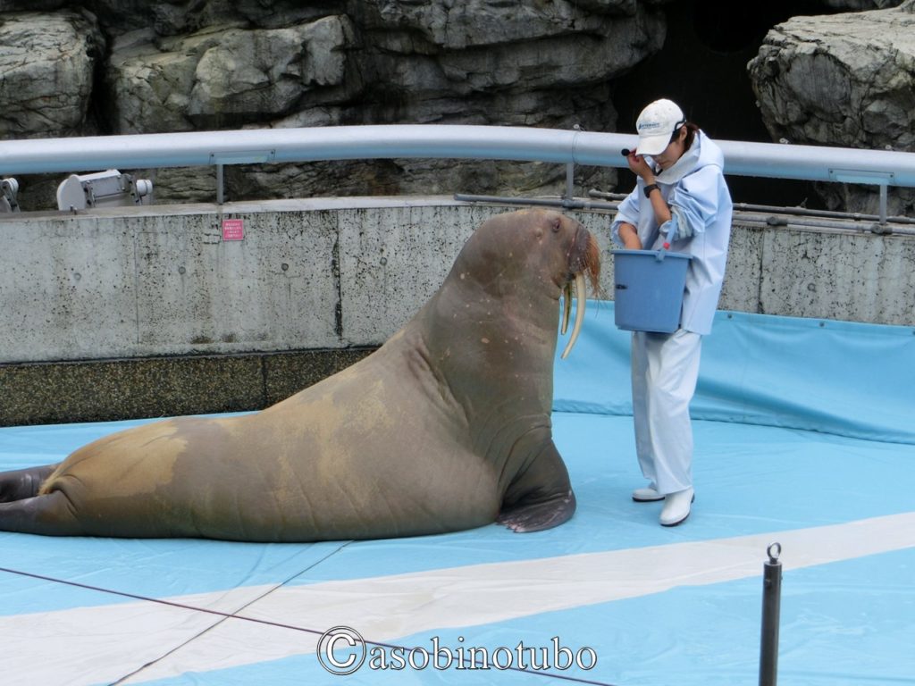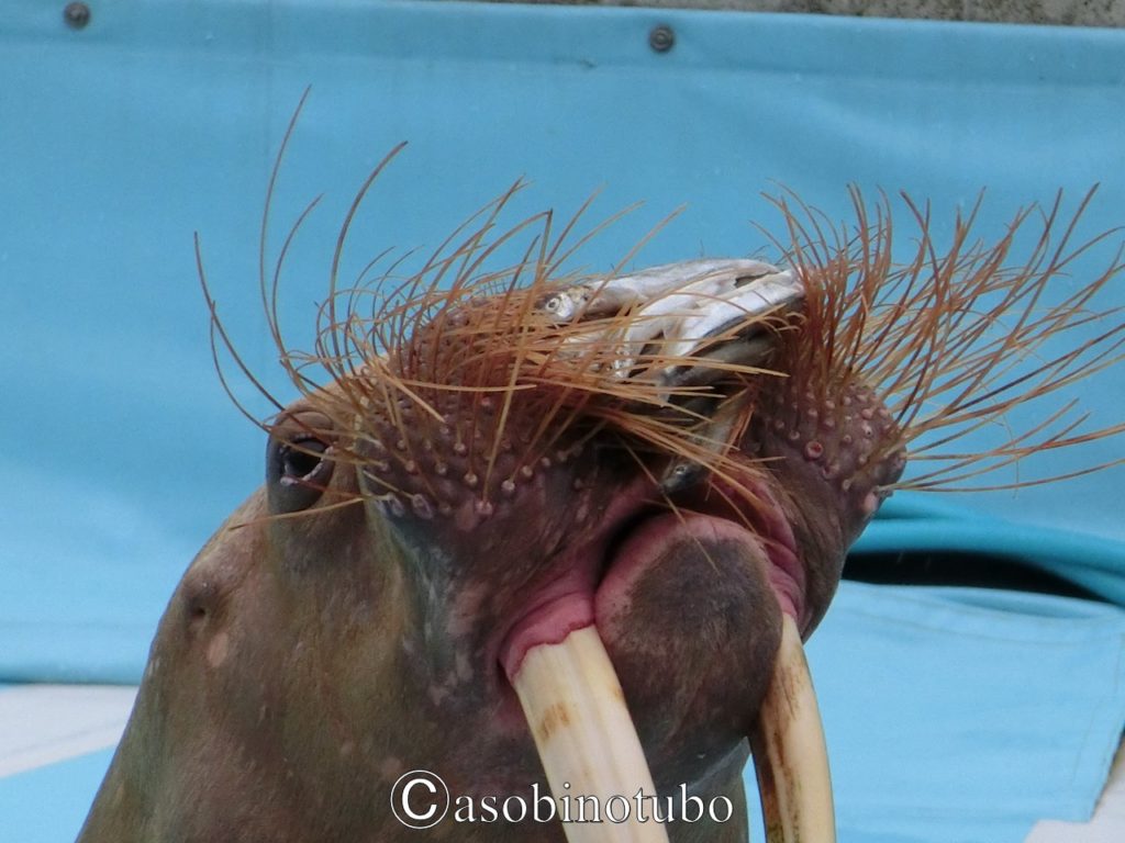 マ「はて! 鼻の動きだけで上手に食べちゃいました。海獣たちを間近で見られて楽しめちゃいました、はってはて♪」
